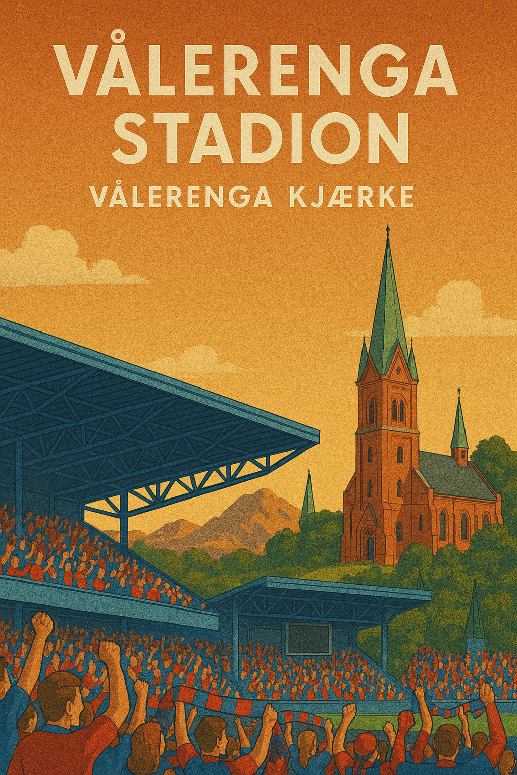 Vålerenga Kjærke som motiv, størrelse 8x12 cm. Laget av AI. Pakken inneholder 50 stykker.